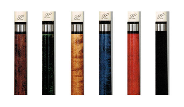McDermott Queues sind zur Hauptsache aus amerikanischem Ahorn, wobei für die Vorderteile immer Ahorn verwendet wird und für die Hinterteile manchmal auch exotische Hölzer wie Zircote, Cocobolo, Bocote oder Bubinga.