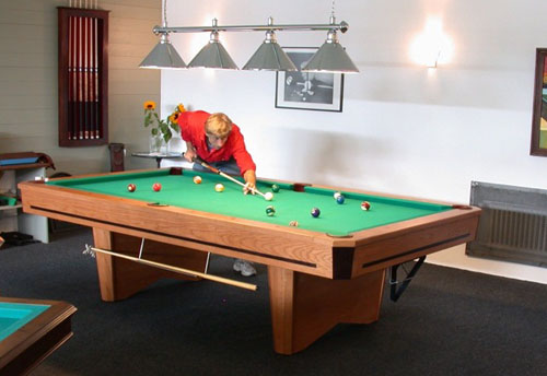 Pooltisch Pool Billardtisch Zaffiro Die Banden sind 12.5 cm breit und flach. Standardmässig sind die Diamanten rhombusförmig, entweder aus Acryl (bei dunklem Holz) oder aus Wenge (bei hellem Holz).